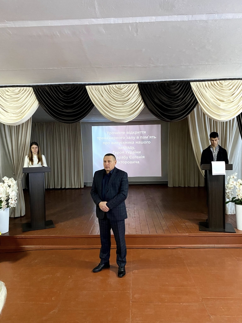 Сьогодні у Клішковецькій територіальній громаді відбулась знакова і незабутня подія – відкриття у ОЗО «Перебиковецький ЗЗСО І-ІІІ ступенів» тренажерного залу, створеного за ініціативи Лесі Дмитрівни та Віктора Ілліча Басарабів, батьків випускника закладу 2014 року, загиблого воїна Героя Басараби Євгенія Вікторовича, нагородженого медаллю «За оборону Авдіївки» та орденом «За мужність» ІІІ ступеня (посмертно). В пам’ять про сина Євгенія вони за власні кошти закупили спортивний інвентар, ковролін для покриття підлоги, та жалюзі.