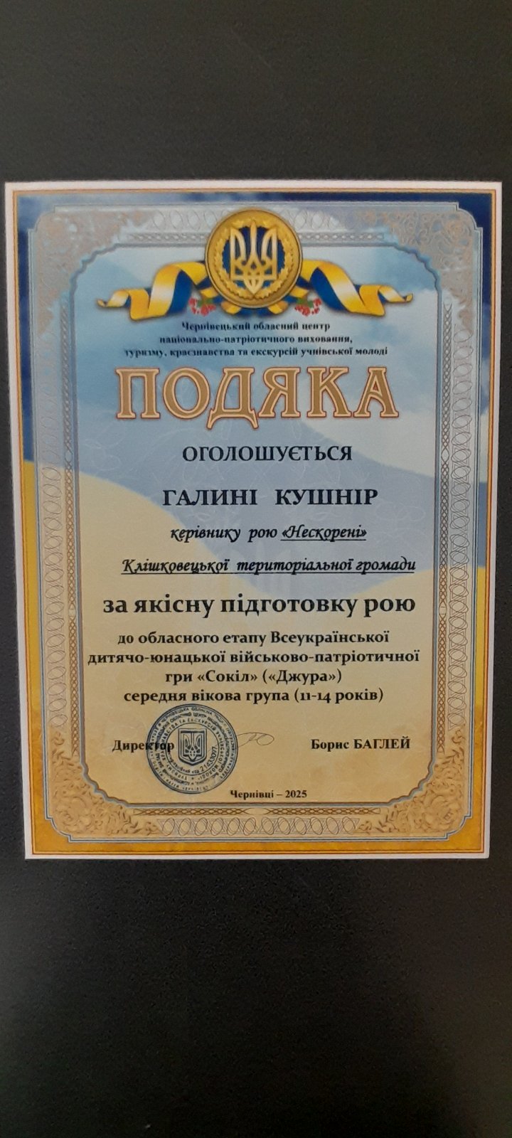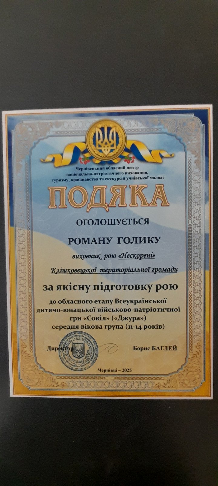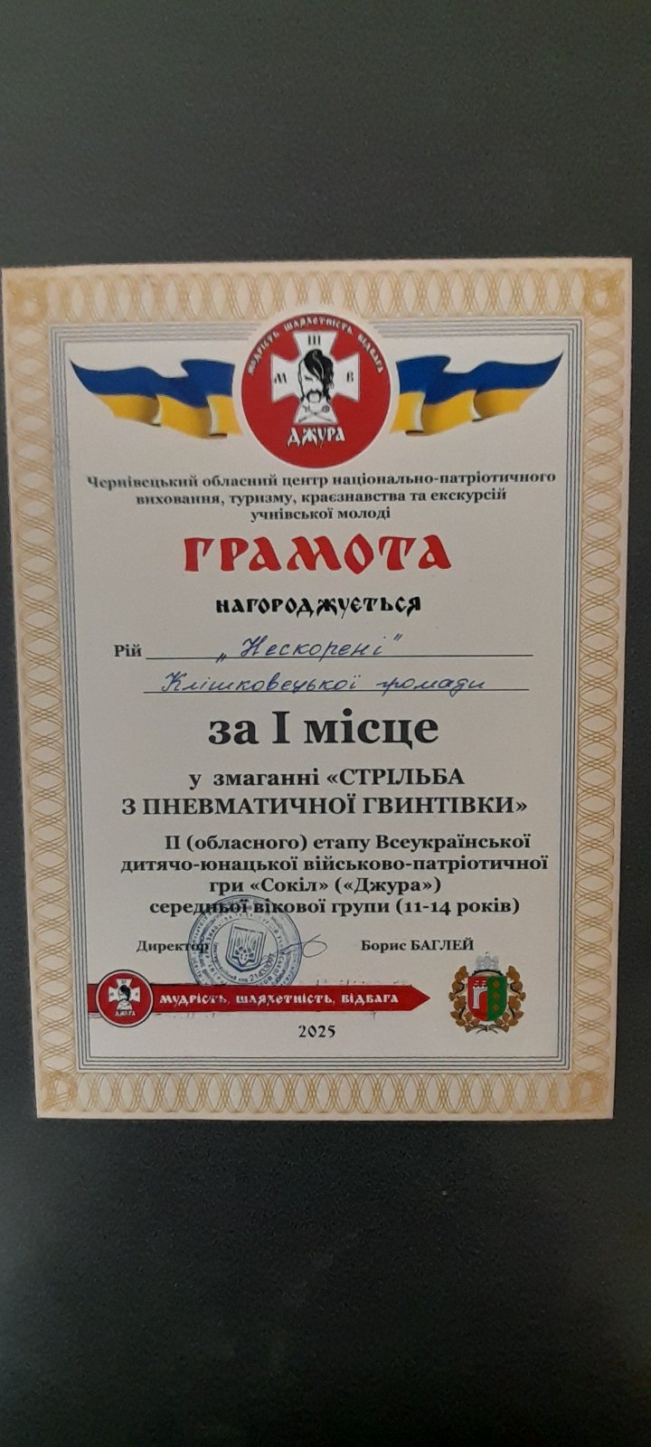 Рій «Нескорені» Клішковецького ОЗО імені Леоніда Каденюка (виховники – Роман Голик, Галина Кушнір, Світлана Бобик) нагороджені за І місце у змаганні «Стрільба з пневматичної гвинтівки»; за ІІ місце у Творчо-мистецькому представленні рою «Ватра»; за ІІ у грі «Пластун»; за ІІ місце у конкурсі строю та маршової пісні «Впоряд».