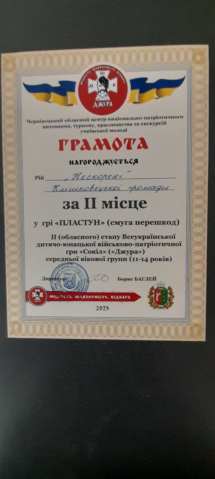 З 07.06. по 09.06.2025 року на базі КЗ «Вижницька спеціалізована школа-інтернат І-ІІІ ст. з поглибленим вивченням окремих предметів та курсів художньо-естетичного циклу імені Назарія Яремчука» проведено ІІ обласний етап Всеукраїнської дитячо-юнацької військово-патріотичної гри «Сокіл» («Джура») для середньої вікової групи. https://bukoda.gov.ua/news/u-vyzhnytsi-vidbuvsia-ii-oblasnyi-etap-vseukrainskoi-dytiacho-iunatskoi-viiskovo-patriotychnoi-hry-sokil-dzhura-dlia-serednoi-vikovoi-hrupy. (відео)