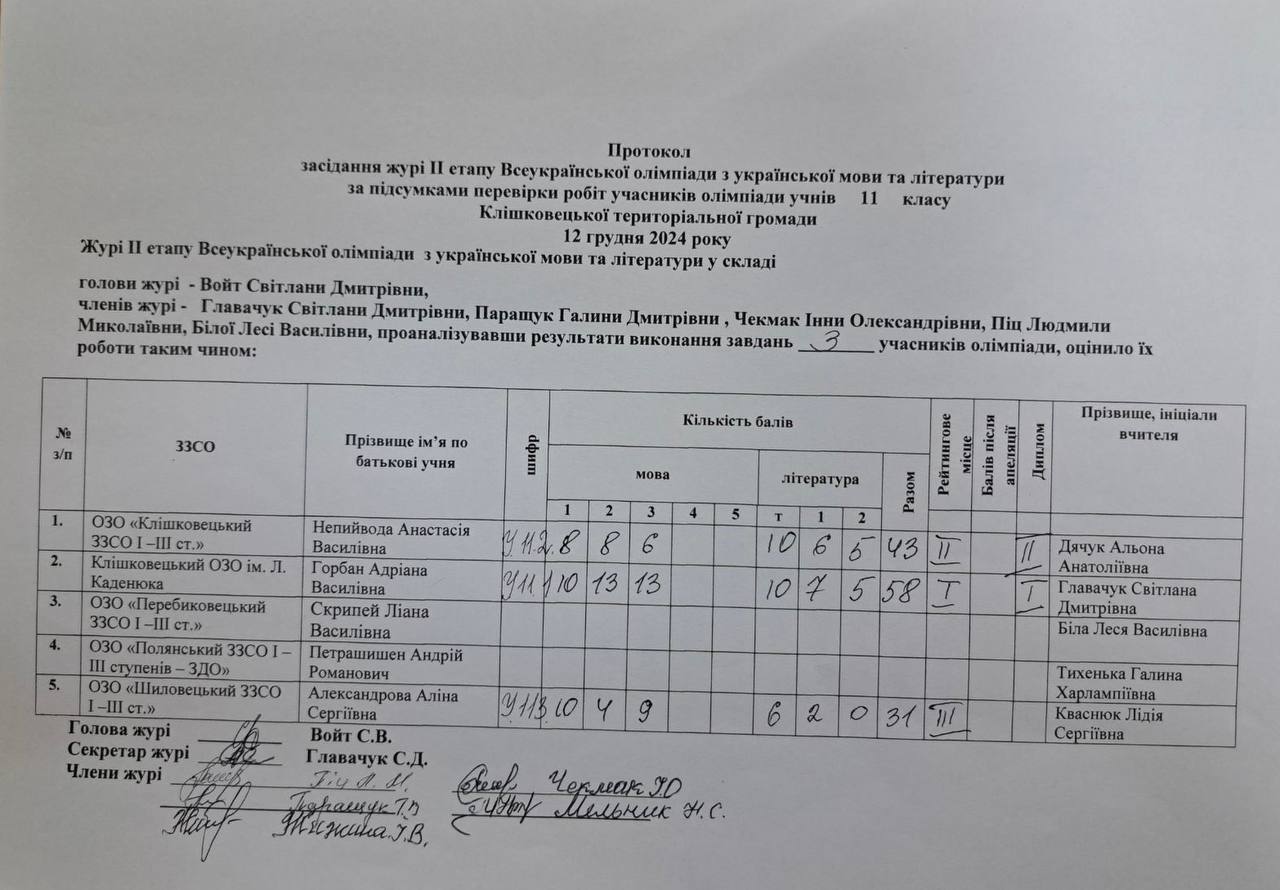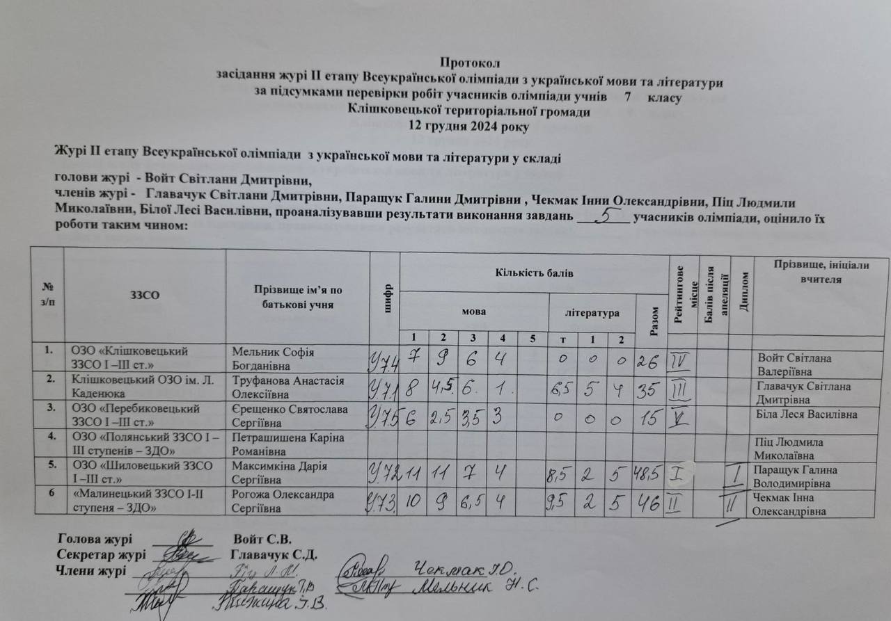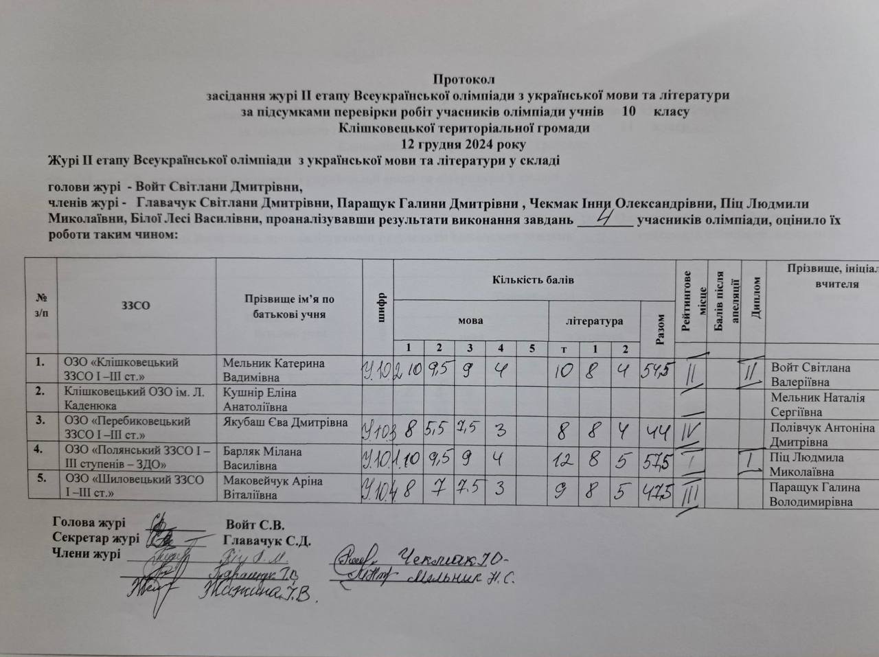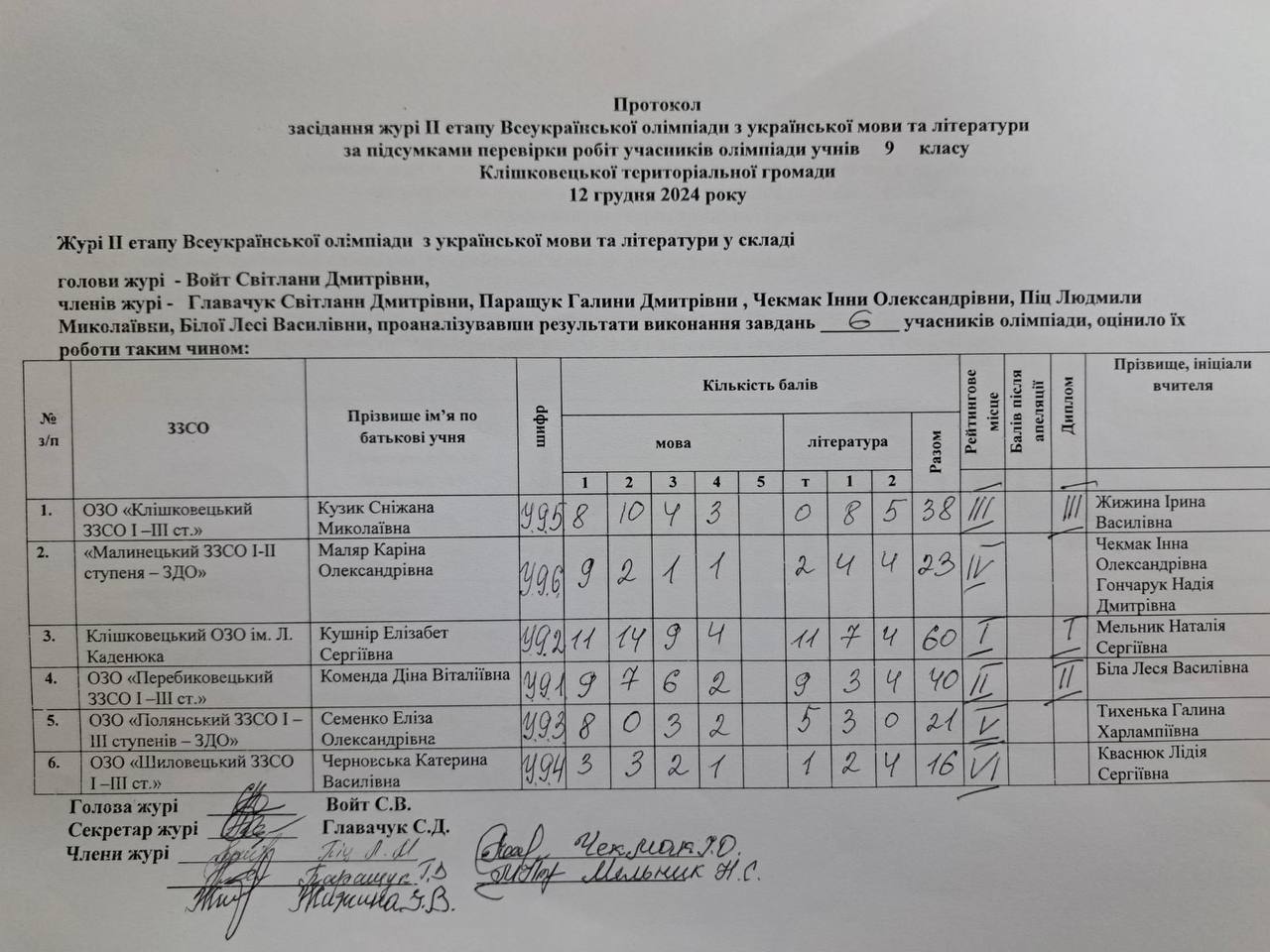 Остаточні результати засідання журі ІІ етапу Всеукраїнської олімпіади з української мови та літератури Автор Ленюк Олена · 15 Грудня, 2024