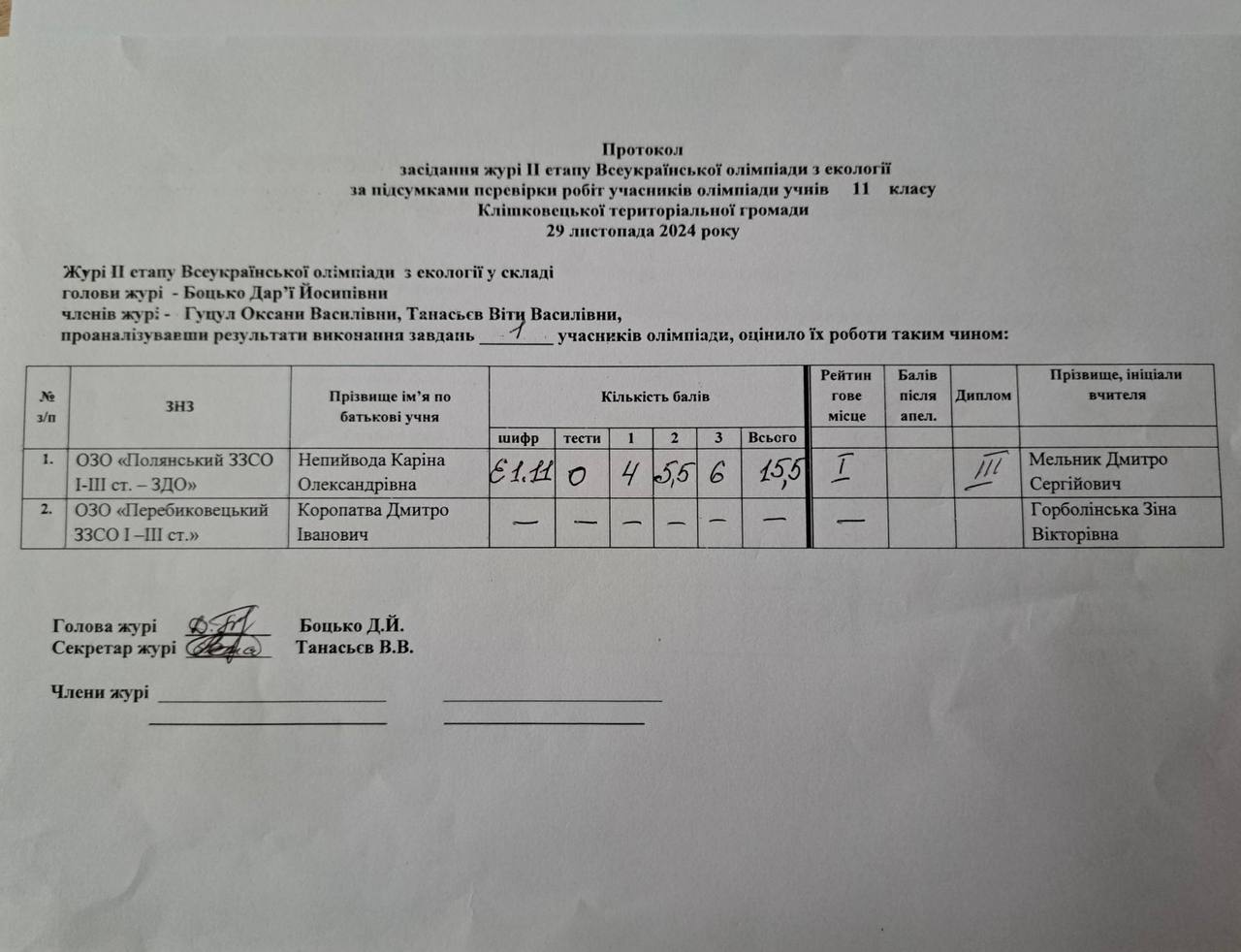 Остаточні результати засідання журі ІІ етапу Всеукраїнської олімпіади з екології Автор Ленюк Олена · 2 Грудня, 2024