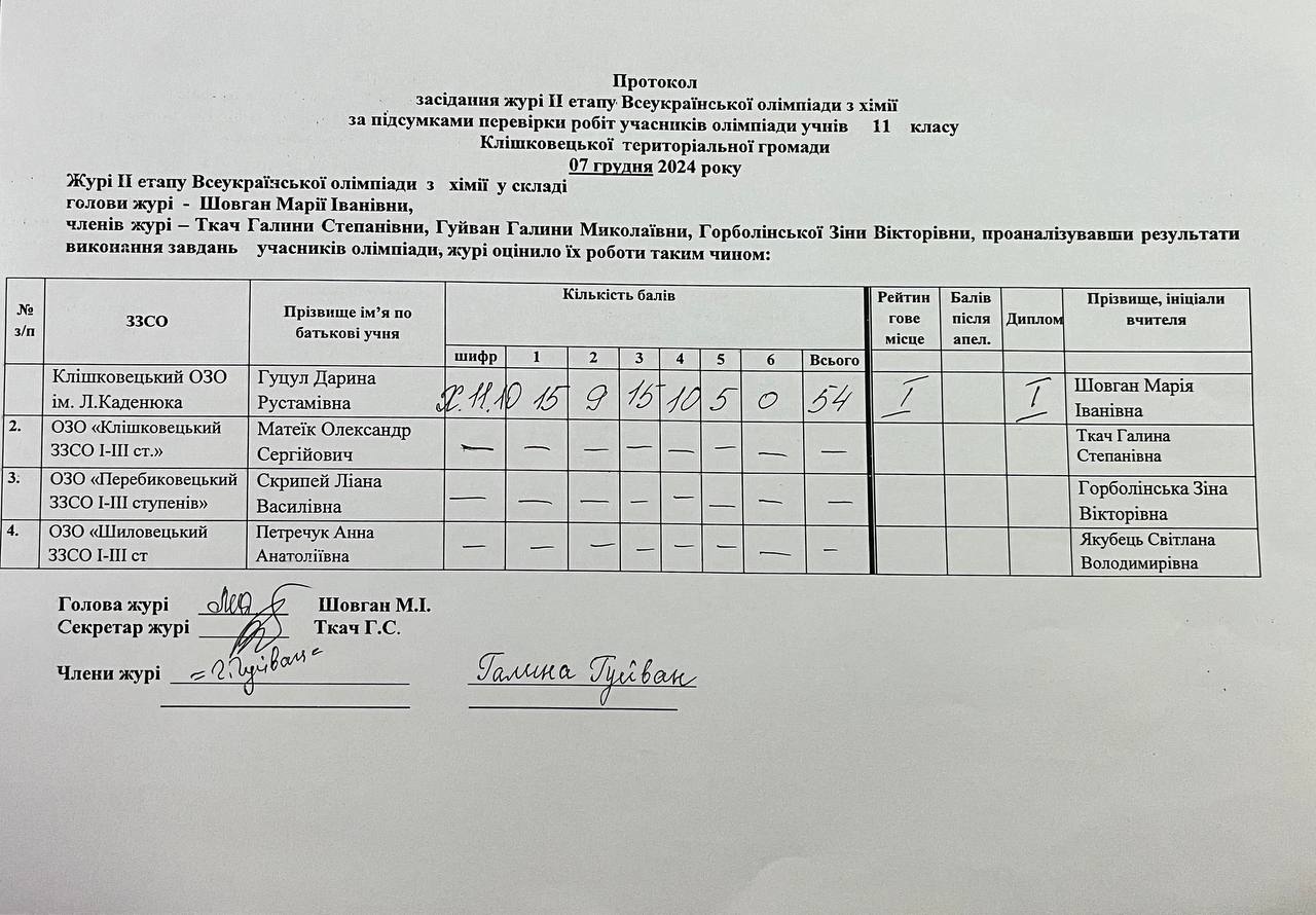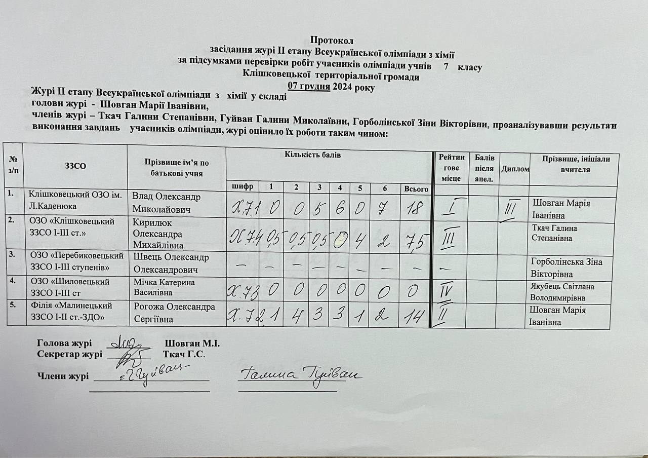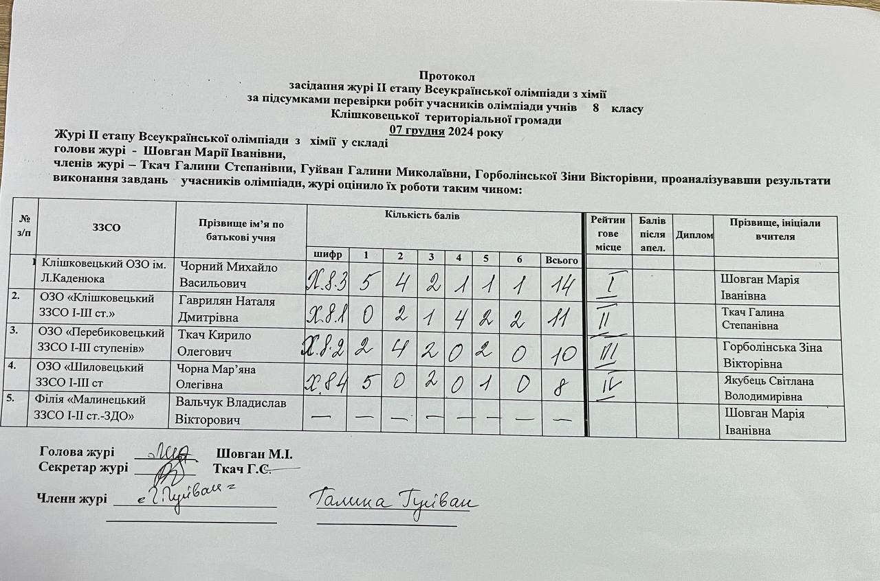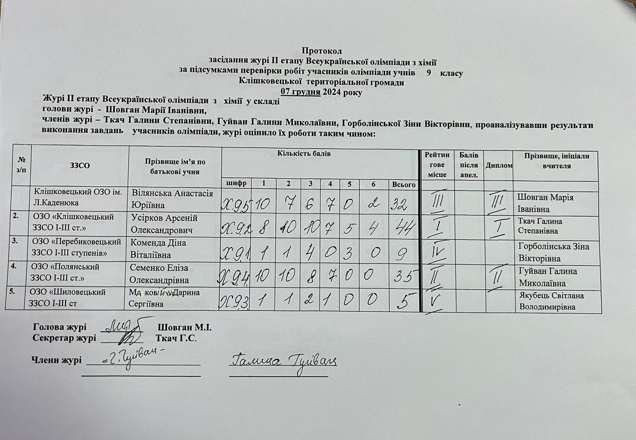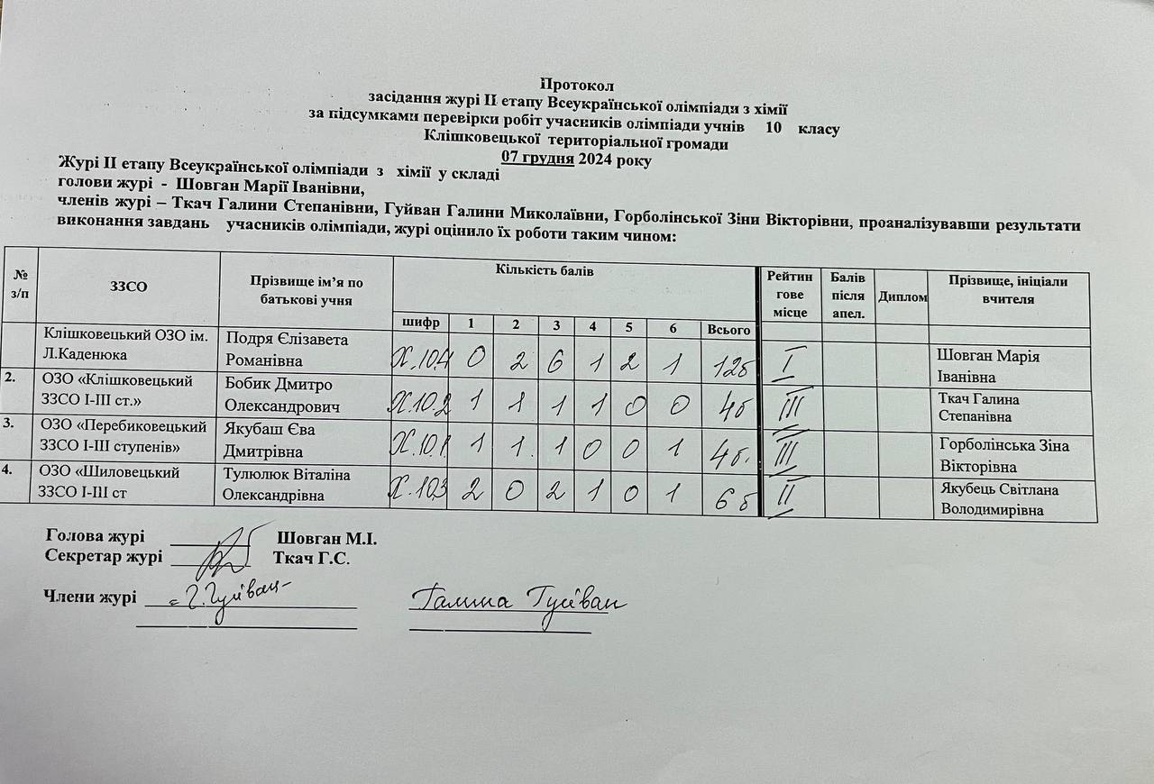 Остаточні результати засідання журі ІІ етапу Всеукраїнської олімпіади з хімії Автор Ленюк Олена · Опубліковано 8 Грудня, 2024