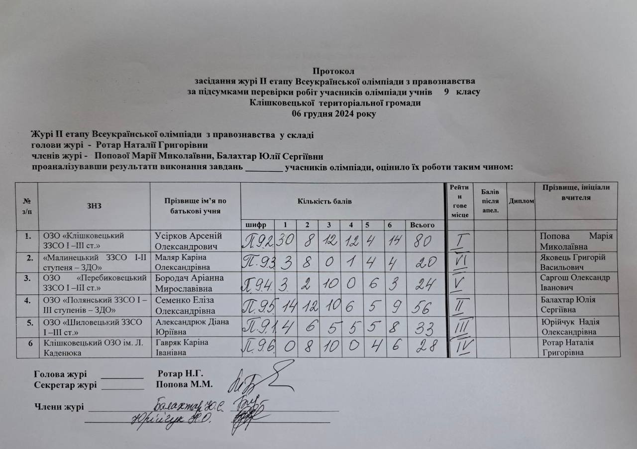 Протоколи засідання журі ІІ етапу Всеукраїнської олімпіади з правознавства Автор Ленюк Олена · Опубліковано 6 Грудня, 2024