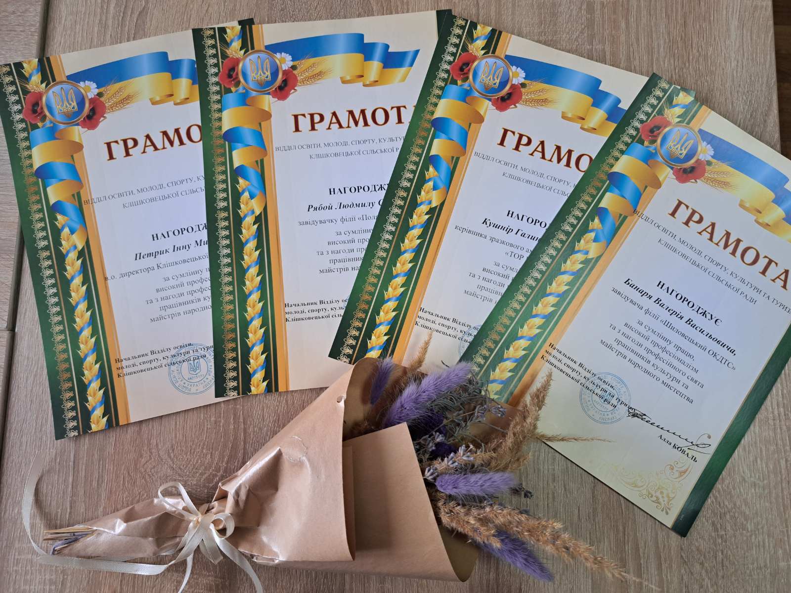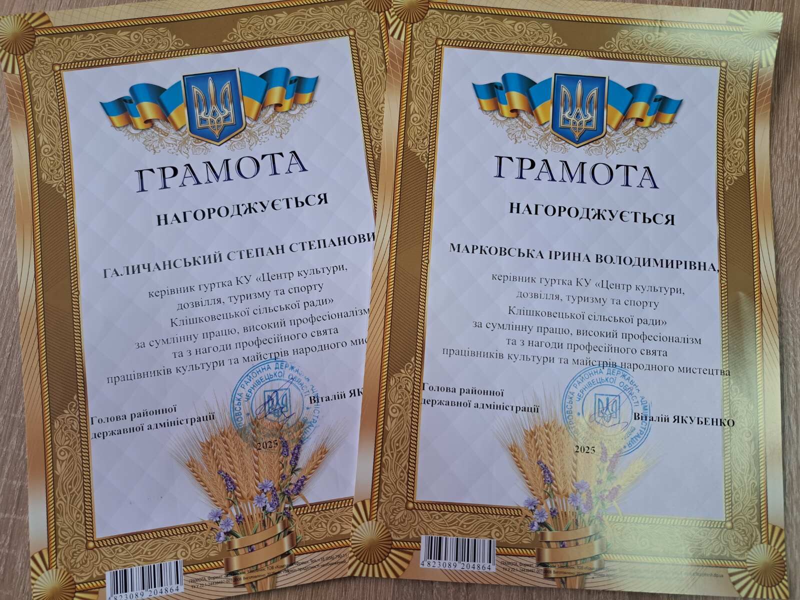 Щороку 9 листопада в Україні відзначають День працівників культури та майстрів народного мистецтва. З цієї нагоди у Чернівецькій обласній філармонії імені Дмитра Гнатюка відбулися урочистості за участі представників обласної влади, територіальних громад, керівників та працівників закладів культури, викладачів мистецьких шкіл, народних майстрів, працівників музеїв, бібліотекарів, митців, творчих колективів та артистів Буковини. Під час святкового дійства лунали слова вдячності тим, хто щодня своєю працею зберігає і розвиває українські традиції, примножує культурну спадщину краю та зміцнює національну ідентичність через творчість і мистецтво. Начальник Чернівецької обласної державної адміністрації (ОВА) Руслан ЗАПАРАНЮК вручив почесні грамоти, дипломи та премії працівникам культури, мистецьким колективам, педагогам мистецьких шкіл, переможцям обласних конкурсів «Краща мистецька школа року» та «Бібліотека року». За активну участь у культурно-мистецькому житті громади, вагомі творчі здобутки, високу професійну майстерність та з нагоди свята Почесною грамотою управління культури Чернівецької обласної державної адміністрації нагороджена директор КУ «Центр культури, дозвілля, туризму та спорту Клішковецької сільської ради» Галина ТКАЧ. За вагомі творчі досягнення та високу професійну майстерність грамотами Дністровської районної державної адміністрації нагороджені Степан ГАЛИЧАНСЬКИЙ, Ірина МАРКОВСЬКА, керівники гуртків КУ «Центр культури, дозвілля, туризму та спорту Клішковецької сільської ради». За сумлінну працю, високий професіоналізм та з нагоди професійного свята грамотами Відділу освіти, молоді, спорту, культури та туризму Клішковецької сільської ради нагороджені Галина КУШНІР, керівник зразкового аматорського колективу «ТОР DANCE», Інна ПЕТРИК, в.о. директора Клішковецької публічної бібліотеки, Людмила РЯБОЙ, завідувачка філії « Полянський ОКДТС», Валерій БАНАР, завідувач філії «Шиловецький ОКДТС». Ви фарбуєте світ пелюстками мрій, вишиваєте долю золотою ниткою. В вашім мистецтві – душа народу. В ній сила, що перемагає бурі. Зі святом, творці, що даруєте світло. Нехай муза шепоче вам в вухо, а вдячність ллється, як весняний дощ. Бо ви – серце нашої культури! Щиро дякуємо за талант, працю, незламність і любов до рідного. Культура — це серце нації. І сьогодні воно б’ється в унісон із кожним, хто боронить Україну, тримає тил, співає, малює, пише й творить — аби ми не втратили себе.